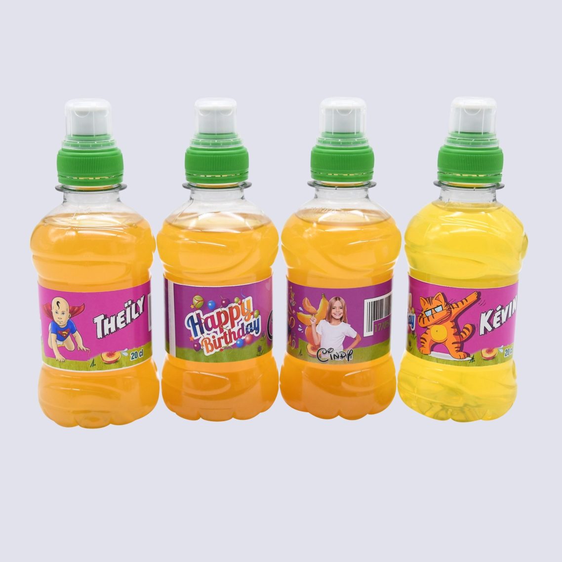 Parfaites pour embellir une table d’anniversaire, garnir les sacs cadeaux ou surprendre les petits invités, nos boissons