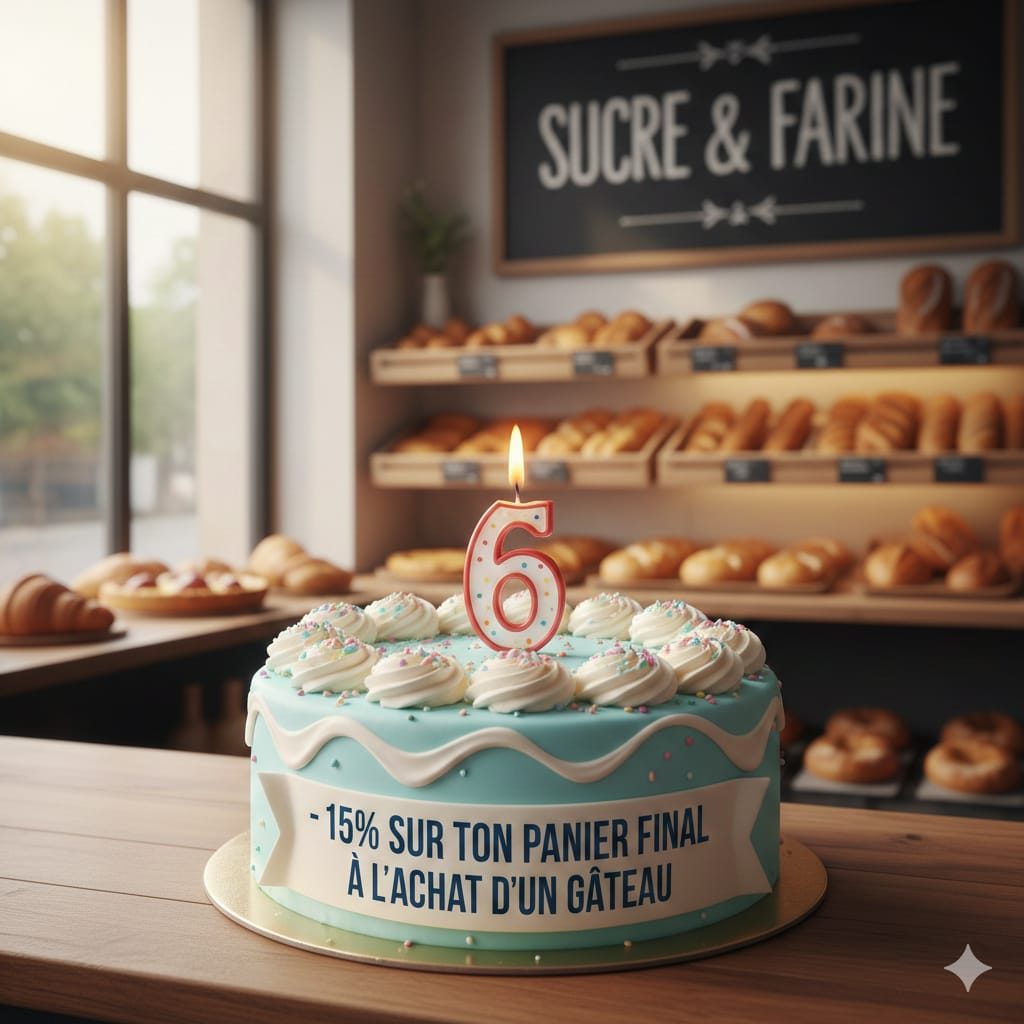 Suite à cet achat le boulanger me remet un bon de réduction éphémère de 15% valable sur mon panier.